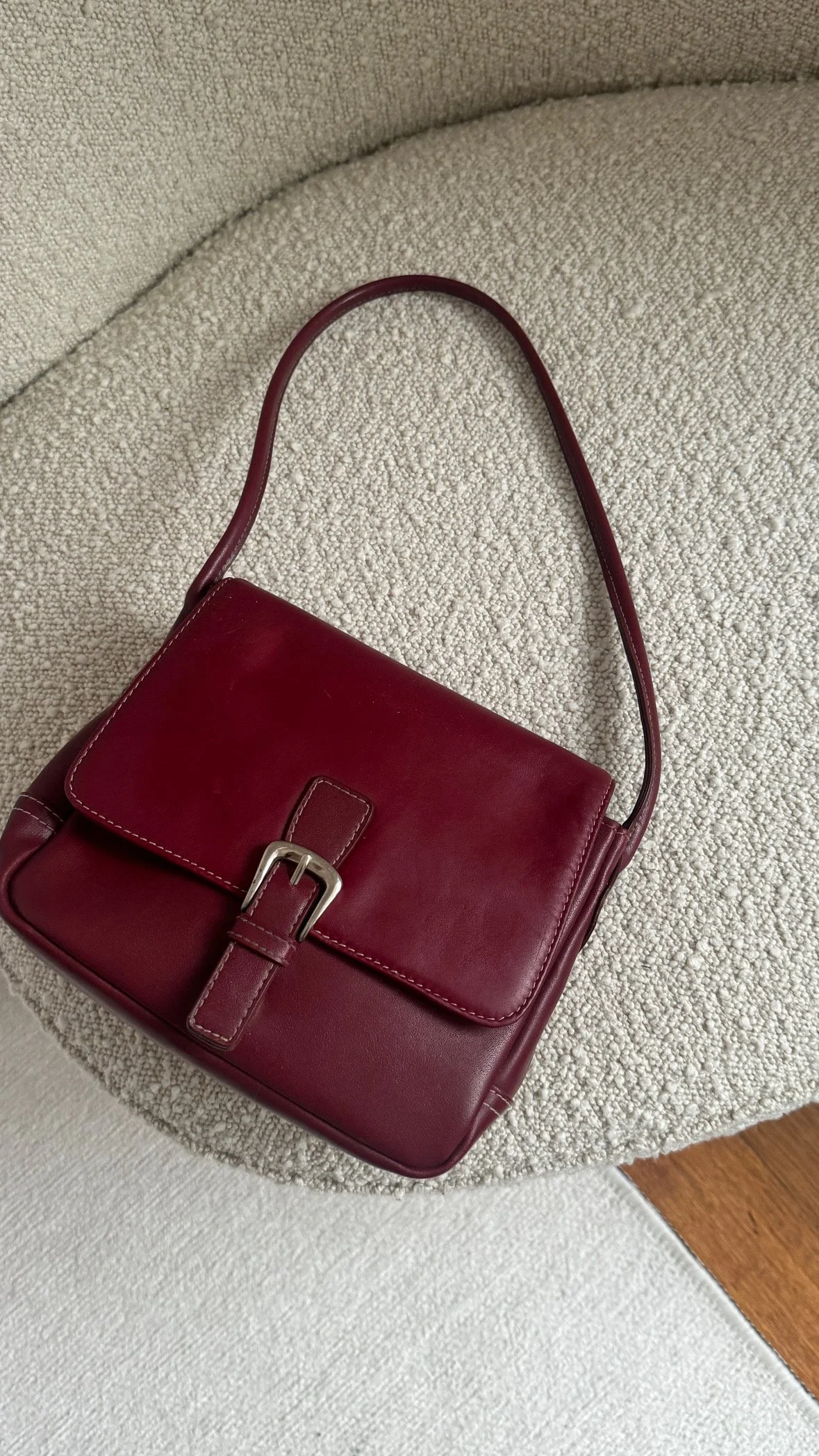 Super cute y2k cherry red leather shoulder bag with contrast stitching and silver hardware. Fits all the essentials.